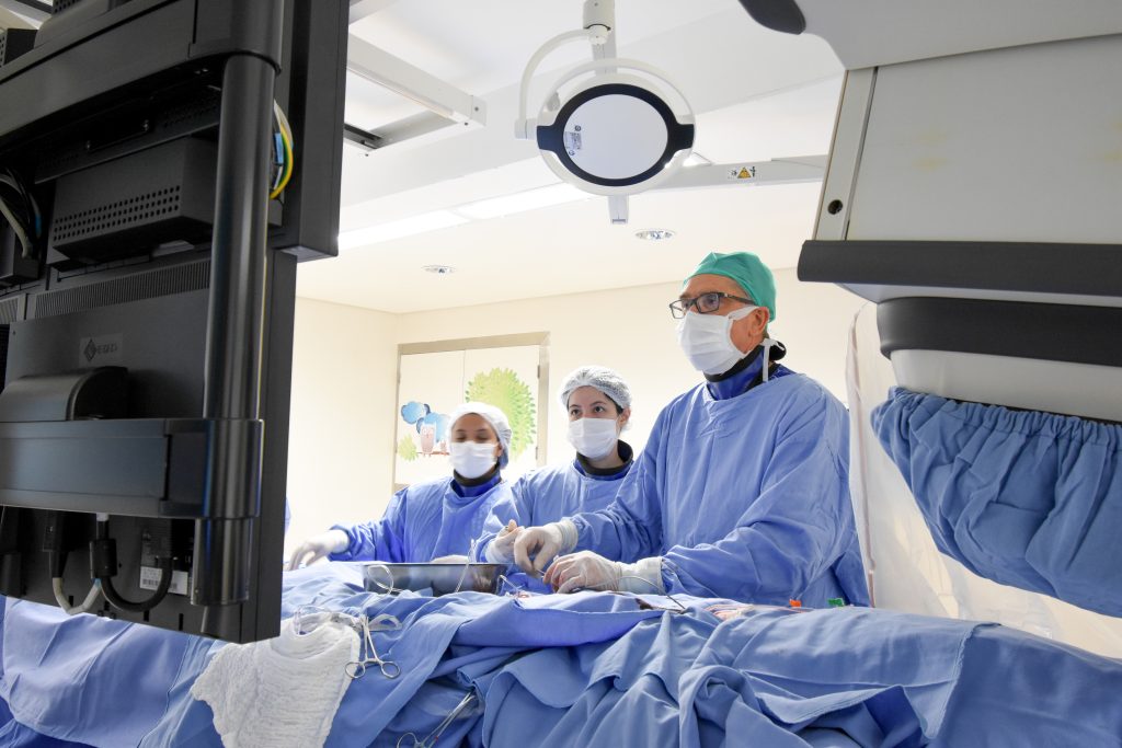 Do total de cateterismos realizados a cada mês na instituição, aproximadamente 15% são terapêuticos (cirúrgicos) e têm como objetivo fazer procedimentos para a melhoria da função de estruturas do coração, como corrigir obstruções e lesões residuais de cirurgias.