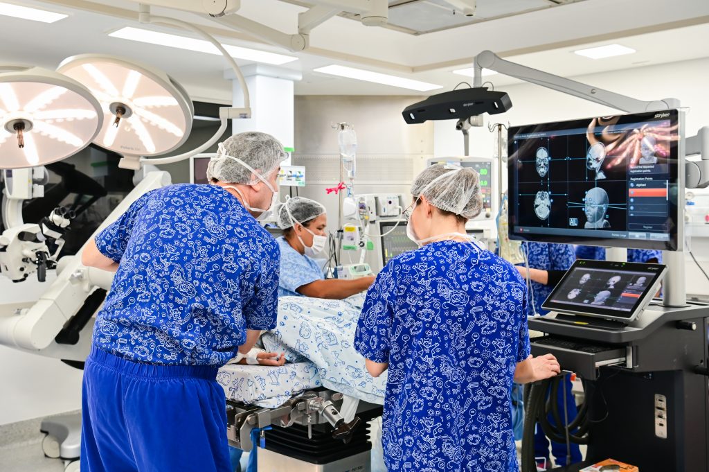 Com estrutura tecnológica avançada, com uso de neuronavegação, neuroendoscopia e microscópio cirúrgico em técnicas minimamente invasivas — e um olhar humanizado —, o atendimento começa antes mesmo da incisão. Enquanto a equipe de anestesia inicia os preparativos, o cirurgião conversa com os pais e responsáveis, repassando cada etapa do tratamento previamente discutida no consultório, acolhendo dúvidas e transformando um momento de apreensão em um encontro de confiança.