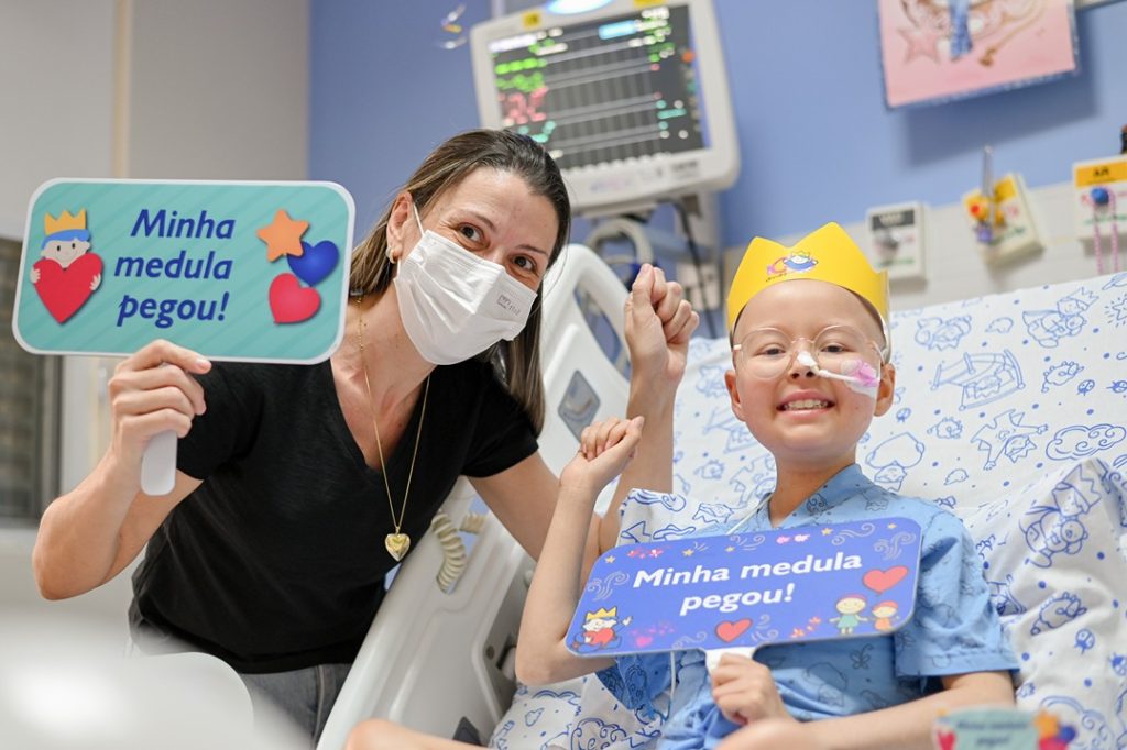 E Alena Eudoxie, de 8 anos, vinda da Guiana Inglesa, enfrentou a leucemia e realizou um transplante de medula óssea no Hospital, sendo amparada por equipes multiprofissionais e pela Casa de Apoio, até receber alta e renovar seus sonhos de infância.