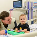 Raquel Sgarbossa, mãe do paciente Vicente Sgarbossa Medeiros. O menino de Ponte Serrada, município de Santa Catarina, foi diagnosticado com miocardiopatia dilatada e realizou o transplante cardíaco no Pequeno Príncipe. A família contou com o atendimento do Serviço de Cardiologia e da UTI da Cardiologia, além do suporte das equipes da psicologia, fisioterapia e do Programa Família Participante.