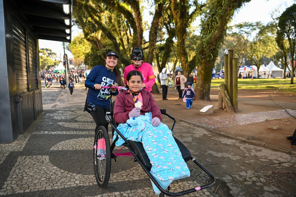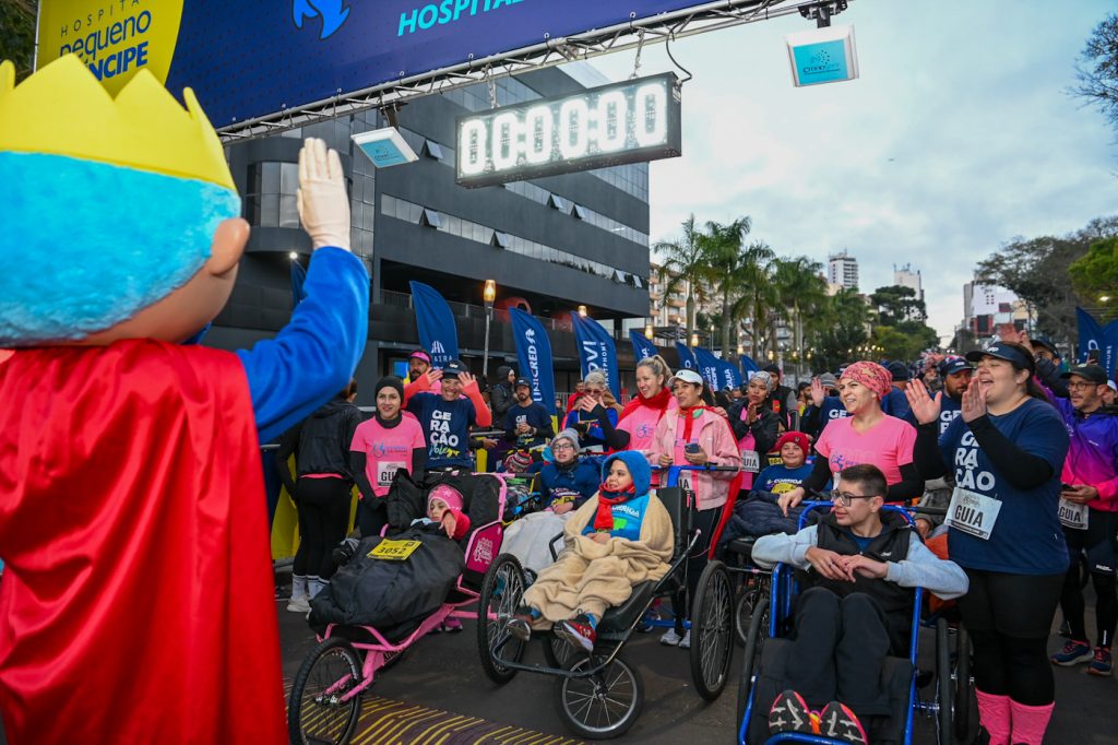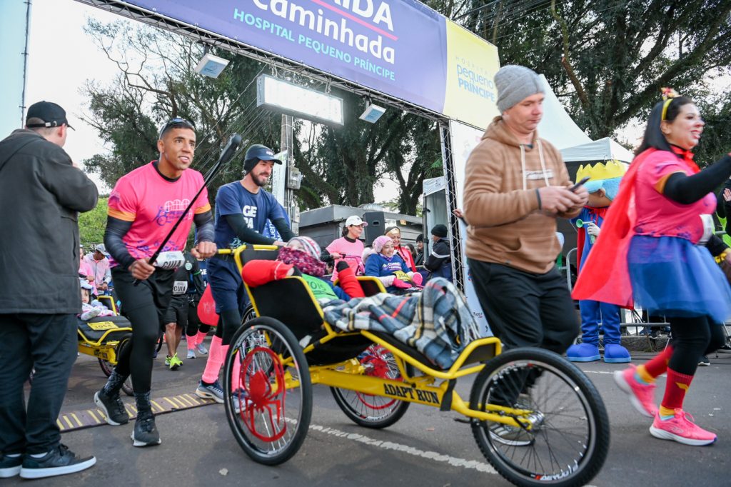 A edição de 2025 também teve a participação do projeto Pernas Solidárias, que promove inclusão social e acessibilidade para pessoas com deficiências físicas. A paciente Sulyelle Bruna Martins Ehrmann, de 10 anos, do Hospital Pequeno Príncipe, participou com uma cadeira de rodas adaptada.