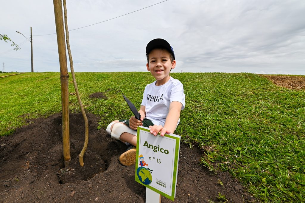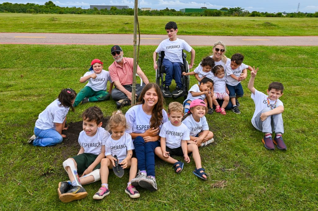 Com a palavra “esperança” estampada na camiseta, crianças atendidas no Centro de Reabilitação e Convivência do Pequeno Príncipe (CRPP) participaram de um plantio de mudas no Parque Náutico de Curitiba. A atividade, repleta de descobertas e simbolismos, marcou o envolvimento dos pacientes em uma ação de educação ambiental e cuidado coletivo.