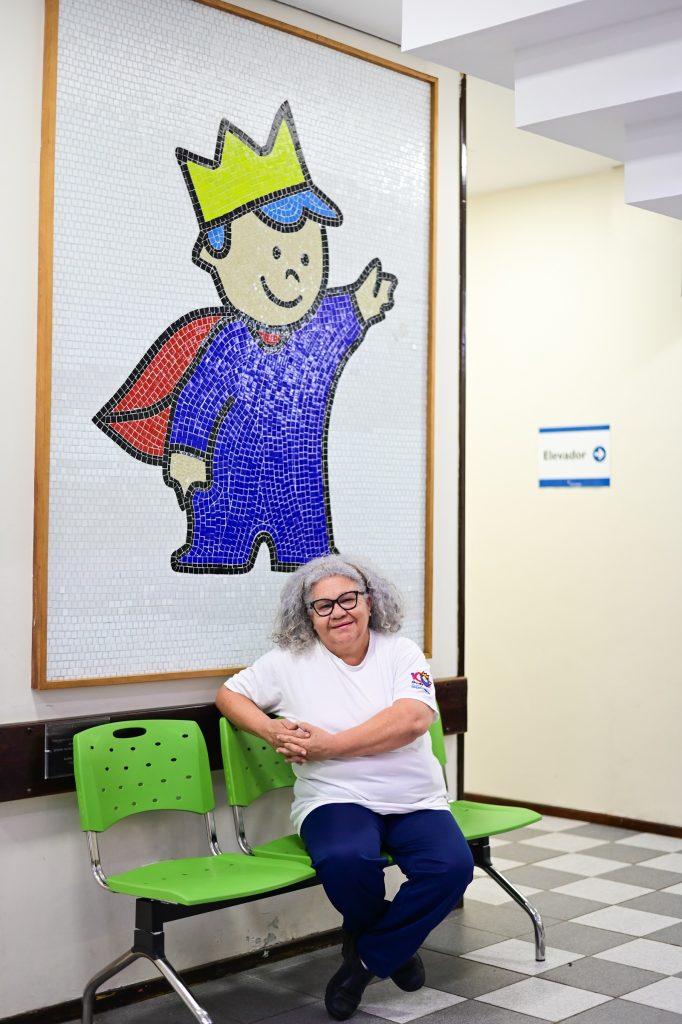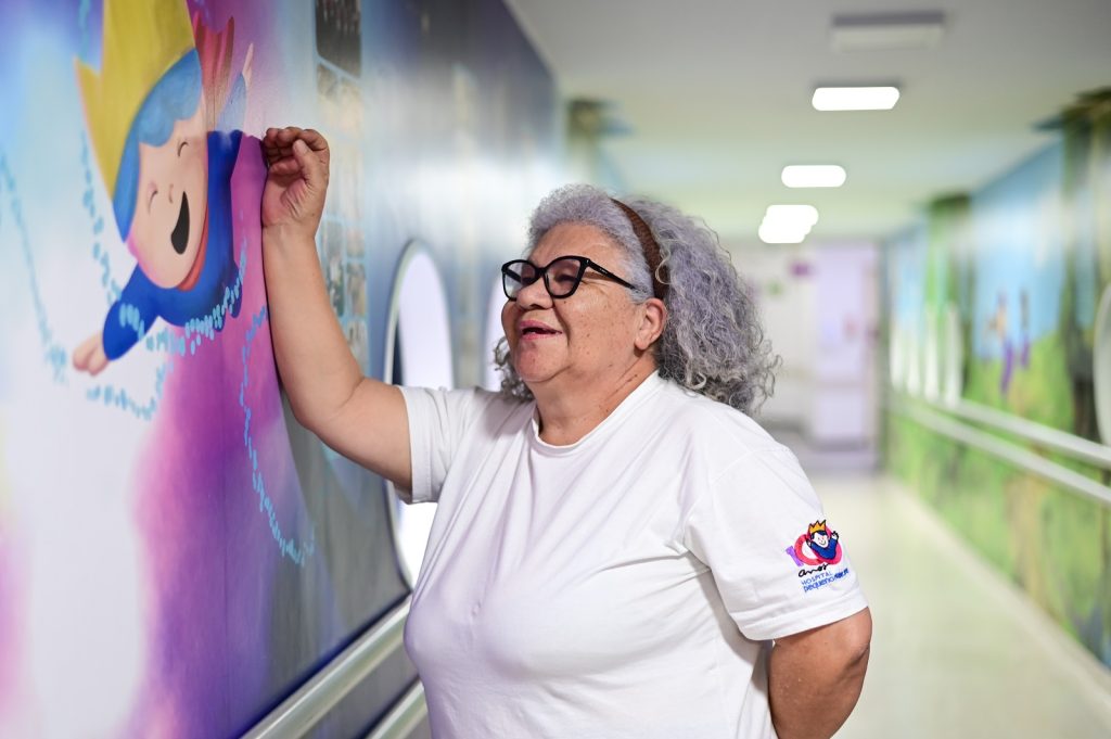“O que me conforta é saber que estou fazendo o meu trabalho direito, ajudando quem precisa ficar bem. Isso é o que eu gosto: ver o resultado do cuidado. Acho que eles também gostam de mim, tanto que acabei ganhando até ‘netos’. Uma vez, eu estava limpando, e algumas crianças chegavam com as mães e já me chamavam de ‘vovó’. Teve uma, a Renatinha, que entrou aqui com apenas 8 meses, quando estava na infecto. Ela me chamou de vovó, e ficou assim até hoje. Hoje ela já tem 12 anos e continua me chamando assim. Assim, ganhei ‘netos postiços’, porque não tenho netos de verdade ainda.”
