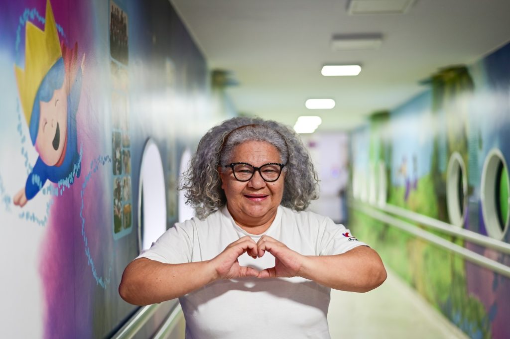 “Para mim, o Hospital Pequeno Príncipe representa algo como se fosse da minha família. Fico 12 horas, depois vou embora, e no outro dia já estou de volta, contente. Não tenho preguiça de vir, nem em dia frio ou chuvoso. Sinto que esse é o meu lugar. O meu dia de trabalho é importante para mim. Quando entrei aqui, eu pensava que ficaria só um tempo, talvez um ou dois anos, porque nunca tinha trabalhado em hospital nem na higienização. Mas o tempo foi passando… e já são mais de 20 anos.”
