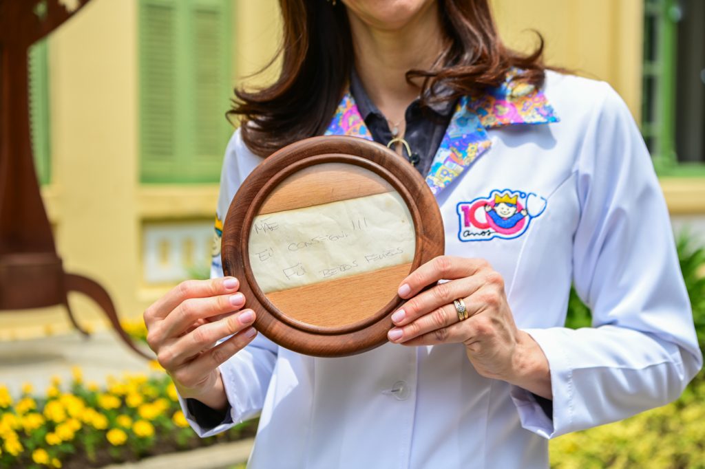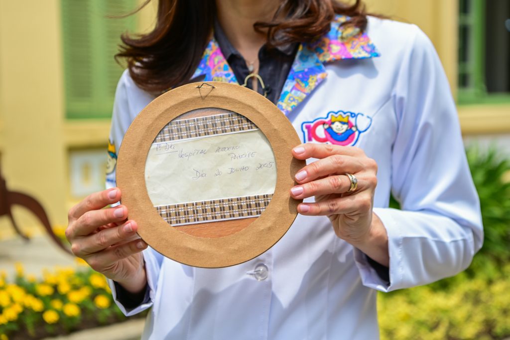 “Quando voltei para Curitiba, meu objetivo era trabalhar no Hospital Pequeno Príncipe. Na época, os processos de contratação eram bem diferentes, não existia um setor de RH estruturado. Preparei meu currículo e o trouxe pessoalmente ao Hospital. A Solange, que trabalhava numa salinha de vidro com o Dr. Donizetti, sabia do meu interesse e me dizia: ‘Precisamos de uma profissional como você, mas no momento não conseguimos contratar.’ Mesmo assim, de vez em quando me ligava: ‘Vem aqui, aparece, para te verem.’ E eu vinha, conversava, mostrava minha vontade. Até que um dia, a ligação tão esperada chegou. Lembro da alegria como se fosse hoje! Na época, ainda não existia WhatsApp ou celulares como agora. Em casa, a gente costumava deixar bilhetes para avisar onde ia. E naquele dia, deixei um bilhete na mesa dizendo: ‘Mãe, eu consegui! Fui. Beijos felizes.’ Minha mãe, toda emocionada, escreveu atrás: ‘1.º dia Hospital Pequeno Príncipe — dia 20 de junho de 2005’. Esse bilhete, inclusive, foi emoldurado e até hoje guardo com carinho. Quando olho para trás e lembro de toda a luta e da vontade que eu tinha de estar aqui, meu coração se enche de gratidão. Por isso, foi realmente uma conquista muito especial.”
